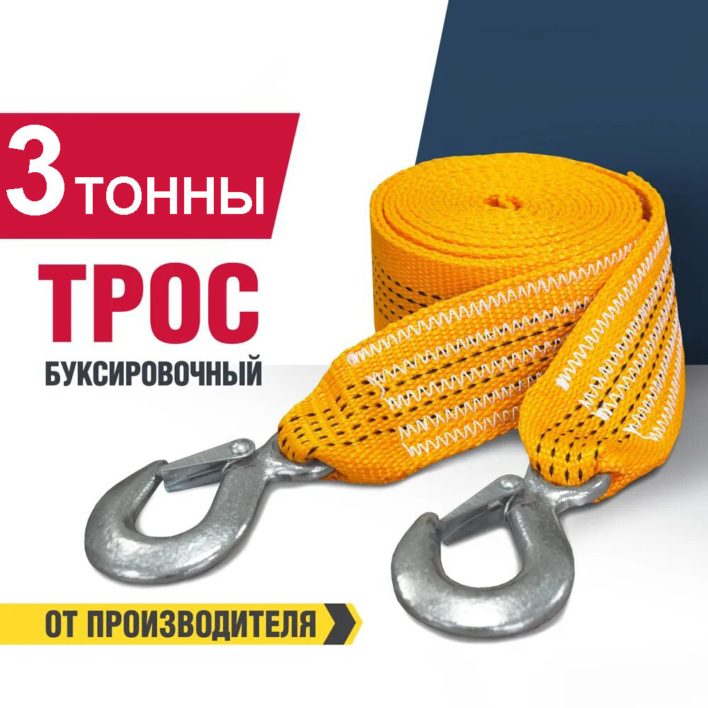 Благодаря свойствам материала трос выдерживает высокую нагрузку на разрыв, поэтому может быть использован для тяжелых автомобилей: внедорожников или автобусов. Он отлично гасит (амортизирует) рывки, которые просто неизбежны при буксировке (особенно при застревании автомобиля или неаккуратном ускорении).